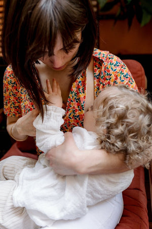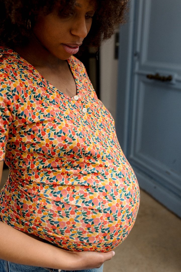 Originally, a dilemma: loving to wear bodysuits but impossible to nurse with this kind of piece (can you imagine unfastening the crotch snaps inside your jeans to nurse? A bit too much gymnastics for our taste and zero practicality!)