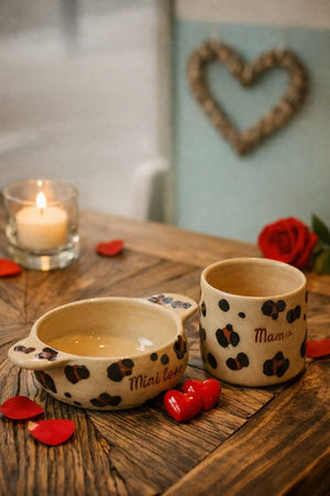 A small bowl and a mug that says I love you… with character 🐆