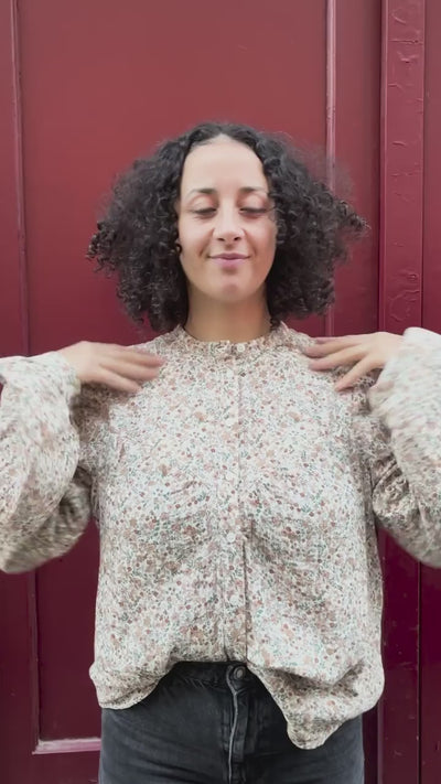 A cotton gauze blouse with always invisible openings, a slightly vintage floral print, we love it and we know you will too…