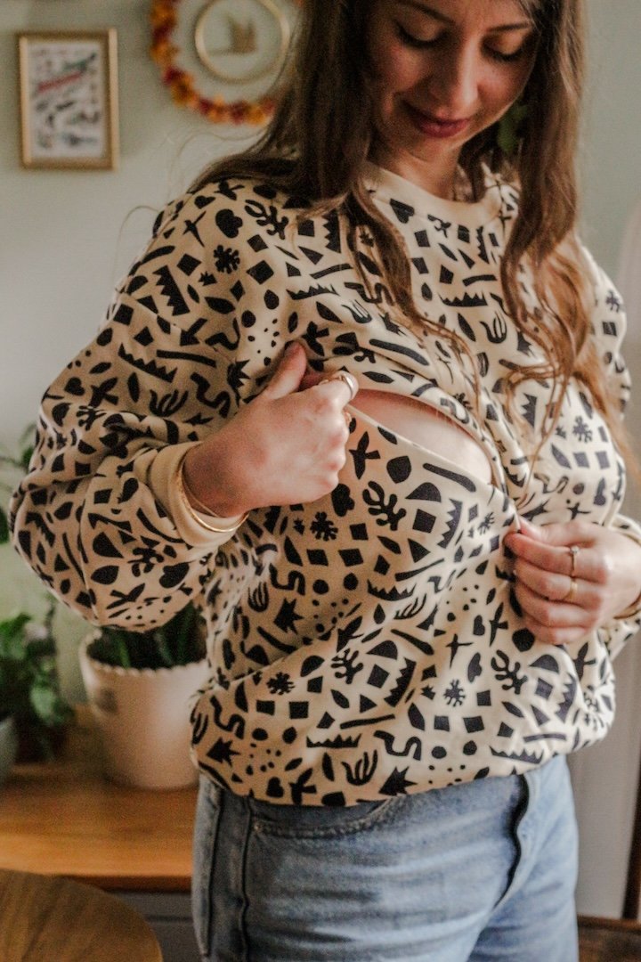 100% thick organic cotton, the perfect piece for breastfeeding without freezing winter or summer!