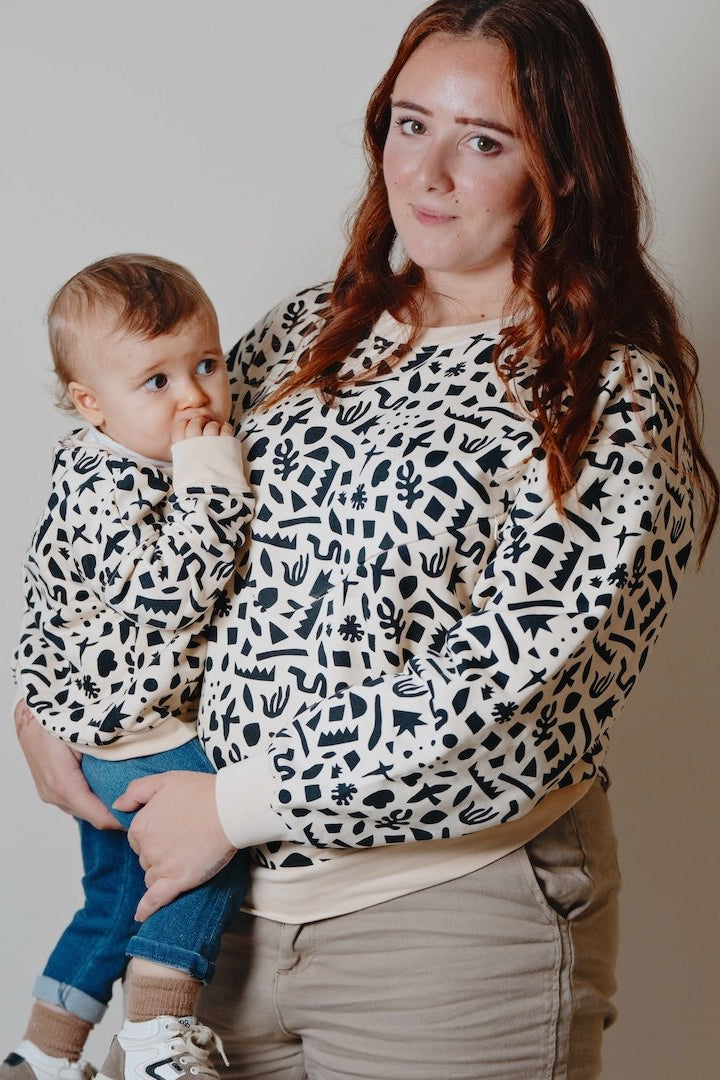 The Géométric Mama sweatshirt fits slightly loose, take your usual size (for an overloose effect, you can size up).