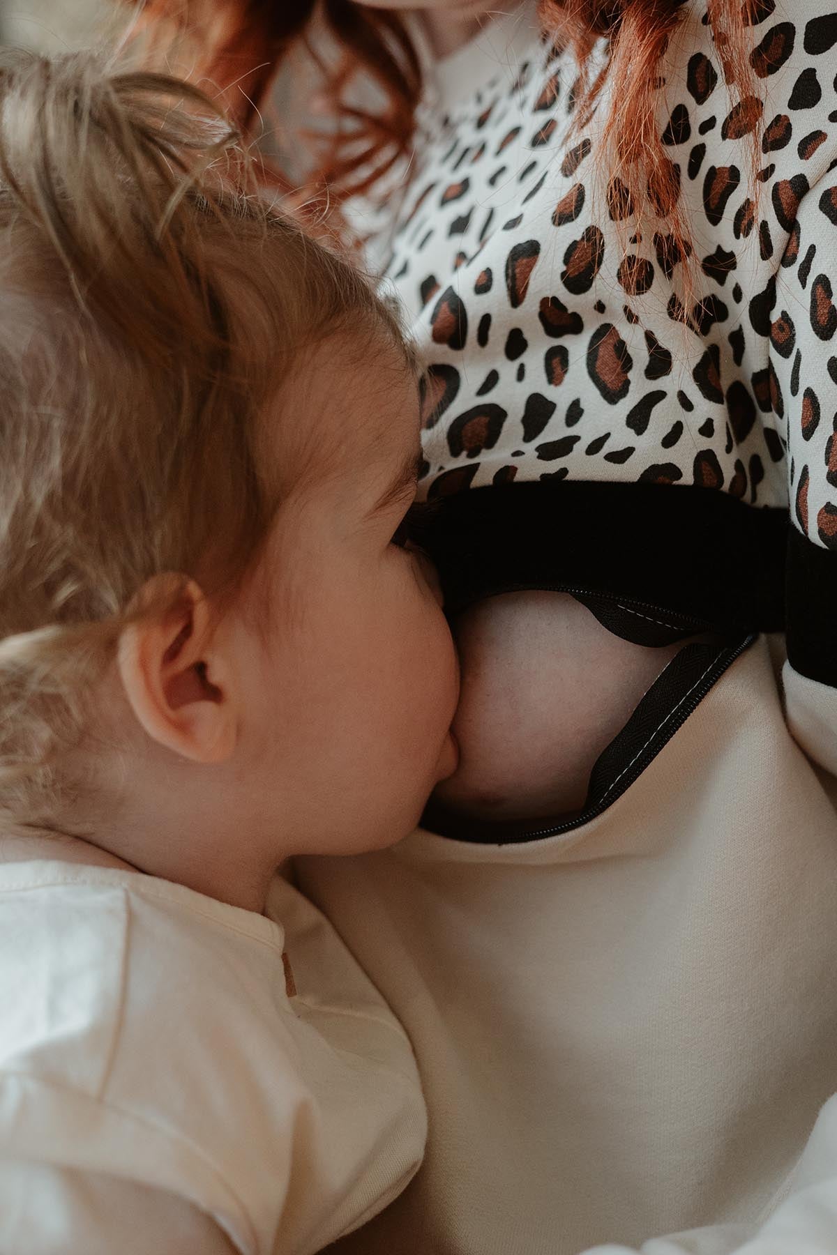 Het trendy stuk in je Milk Mama garderobe (of niet, want je bent vrij om het te dragen tijdens het voeden of niet, of lang nadat je je lactatie-avontuur hebt afgesloten), is deze trui die niet alleen super comfortabel is, maar ook stijlvol tot in de puntjes, ultra zacht met zijn fleece/geruwde voering, 100% biologisch katoen, en praktisch om overal vrij te voeden dankzij de altijd goed doordachte openingen!