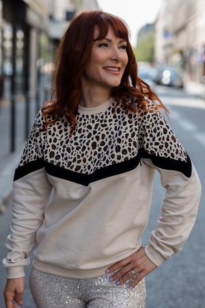 - Wat deze trui uniek maakt, zijn de inzetstukken van french terry, fluweel en luipaardprint. Je gaat hem passen en nooit meer uitdoen! #ParoleDeGraouAddict