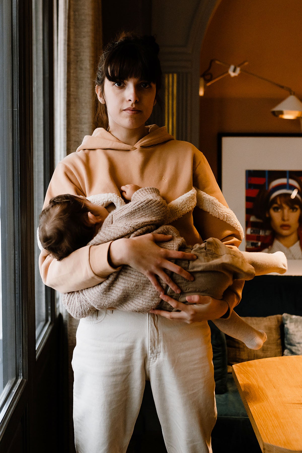 Mélanie mesure 1,70m et porte le hoodie Mom’moute en taille S