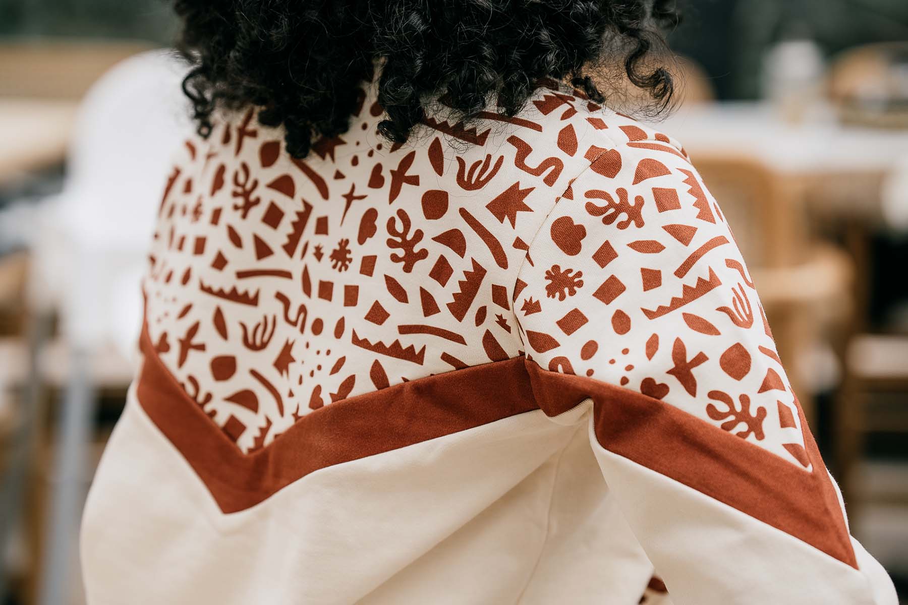 Le sweat Géométric Mama taille légèrement loose, prenez votre taille habituelle (pour un effet overloose, vous pouvez surtailler).
