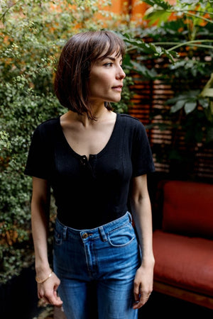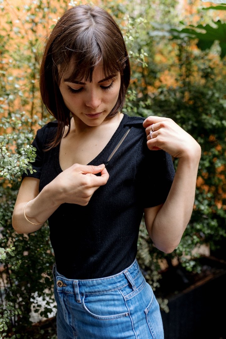 Ursprungligen ett dilemma: att älska att bära bodies men omöjligt att amma med den här typen av plagg (ser du dig själv knäppa upp tryckknapparna i grenen inuti dina jeans för att amma? Lite för mycket gymnastik för vår smak och noll praktisk användning!)