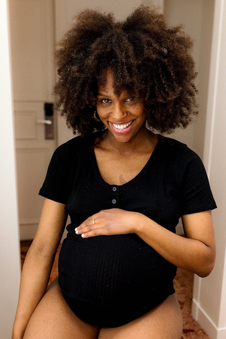 • Noémie mesure 1,58 m, est enceinte de 7 mois (twins ❤️❤️) et porte le body love my body en taille S